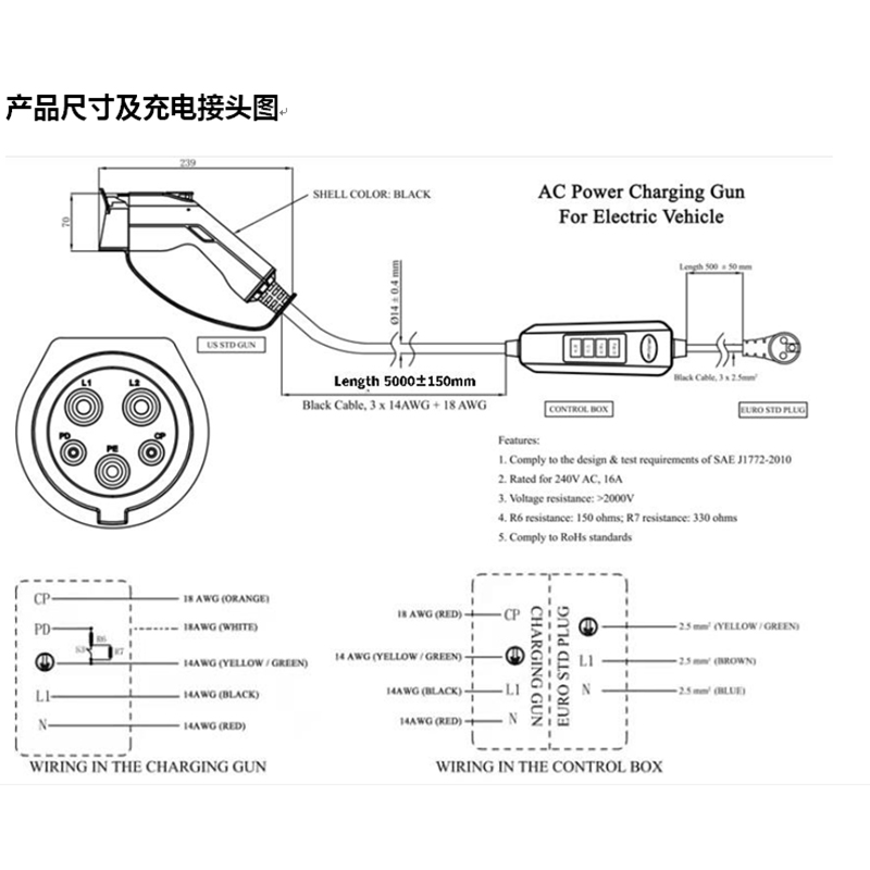 1、 EV 充電連接器界面設(shè)計(jì)符合 SAE J1772 法規(guī)標(biāo)準(zhǔn);